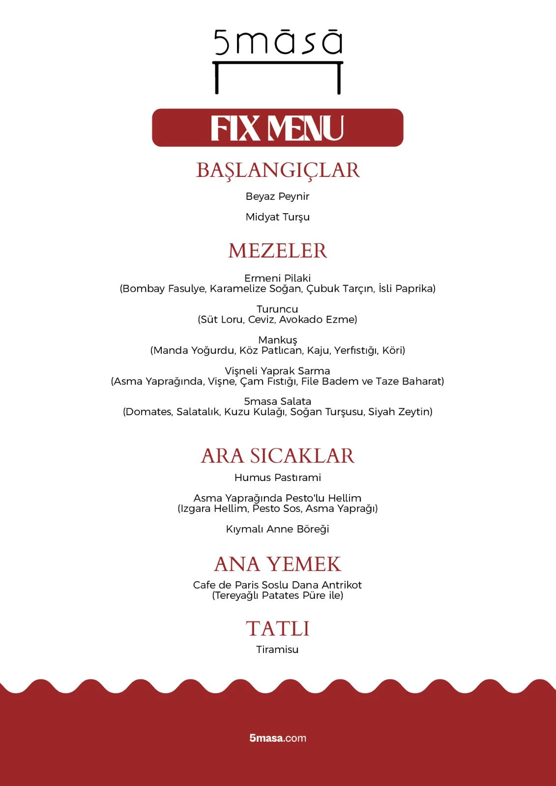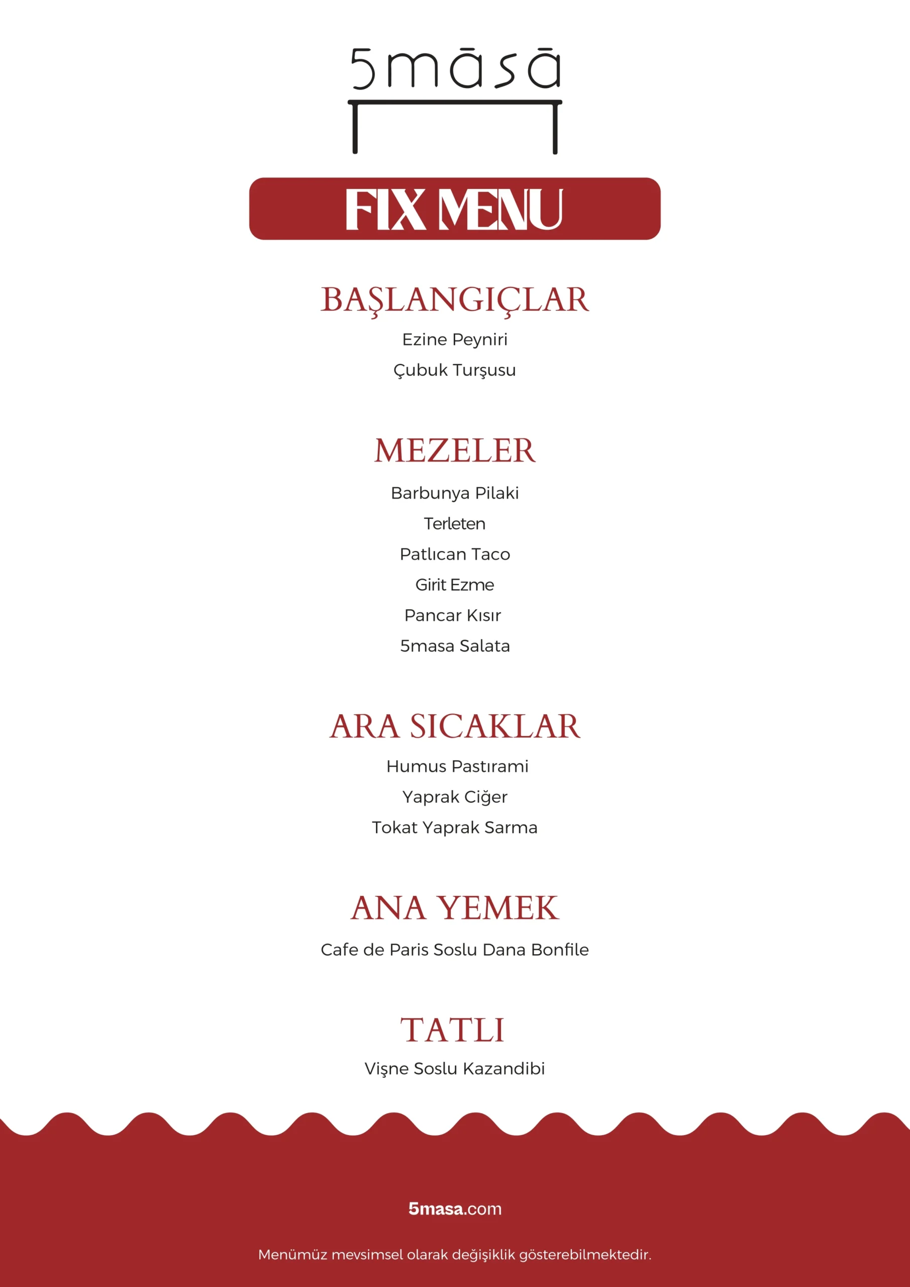 5masa mutfağından çıkan ve mevsimsel olarak en taze ürünlerle hazırlanan lezzetli yemekler, deneyiminiz boyunca size eşlik ediyor.